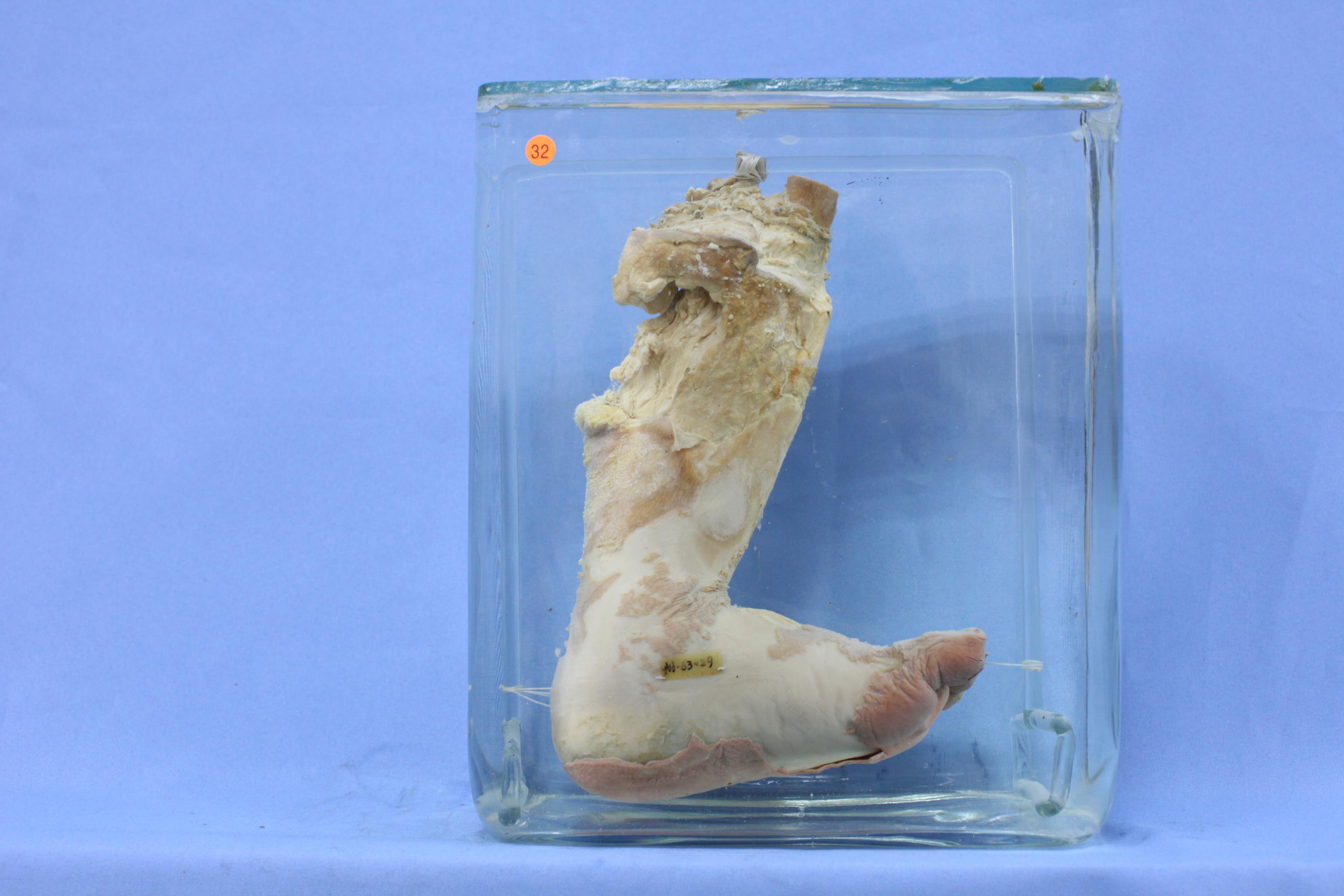 足及下肢明显肿胀,失去正常外观,表皮剥脱,足趾发黑,病变处与正常组织间无明显分界线。