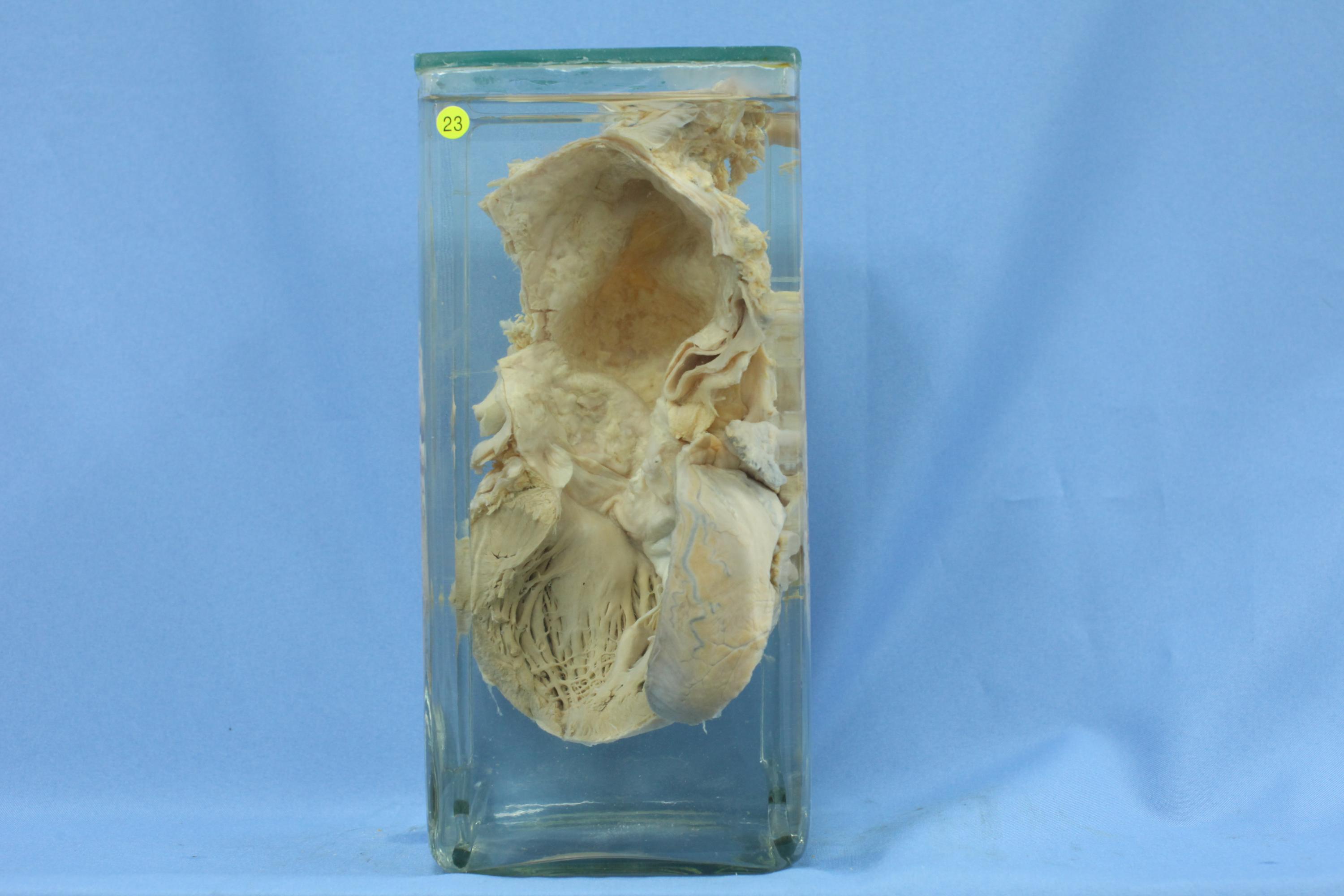 患者男性, 69岁, 高血压病史。主动脉内膜面粗糙,呈树皮样皱纹,主动脉起始部上方可见主动脉壁向外膨出,形成主动脉瘤。