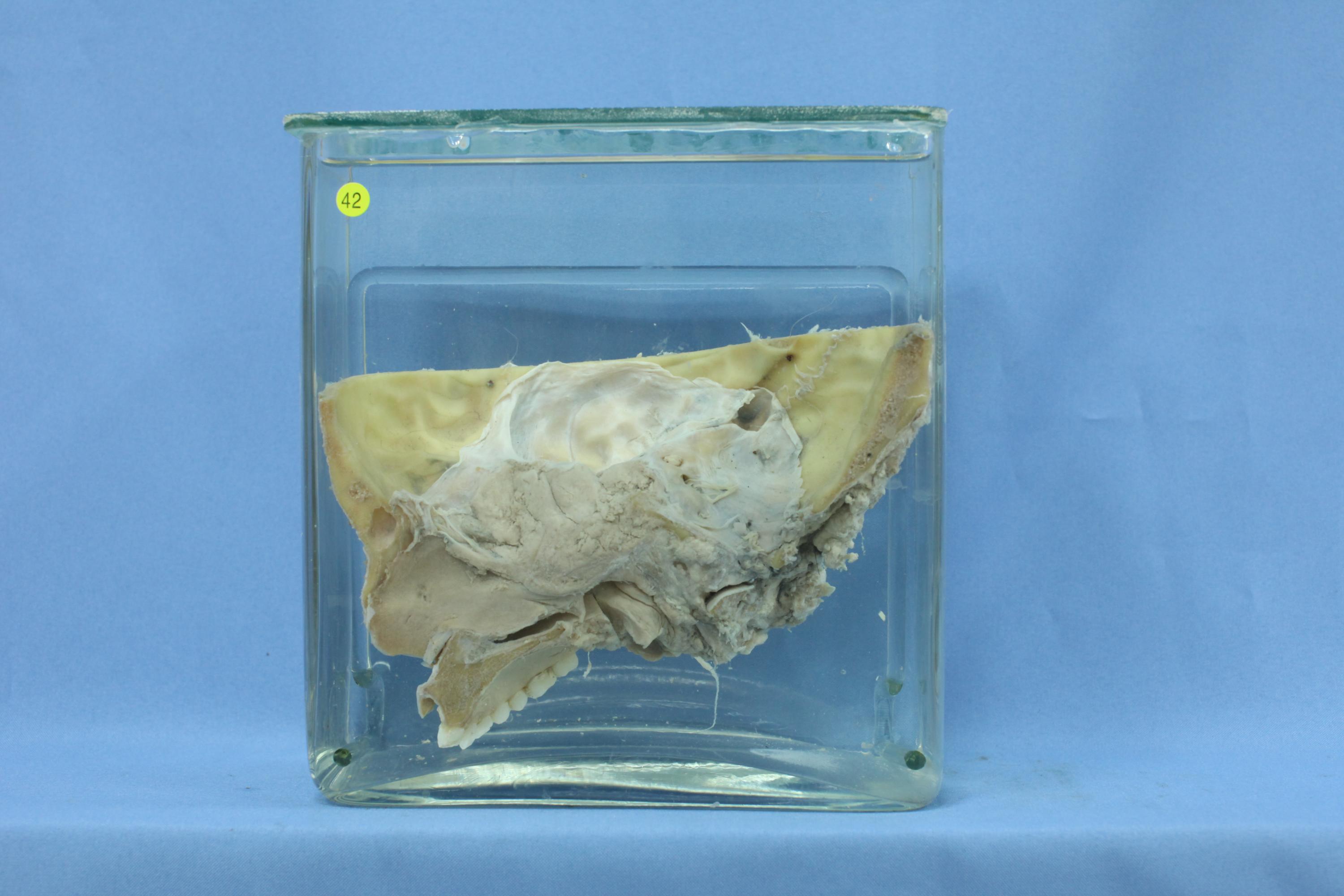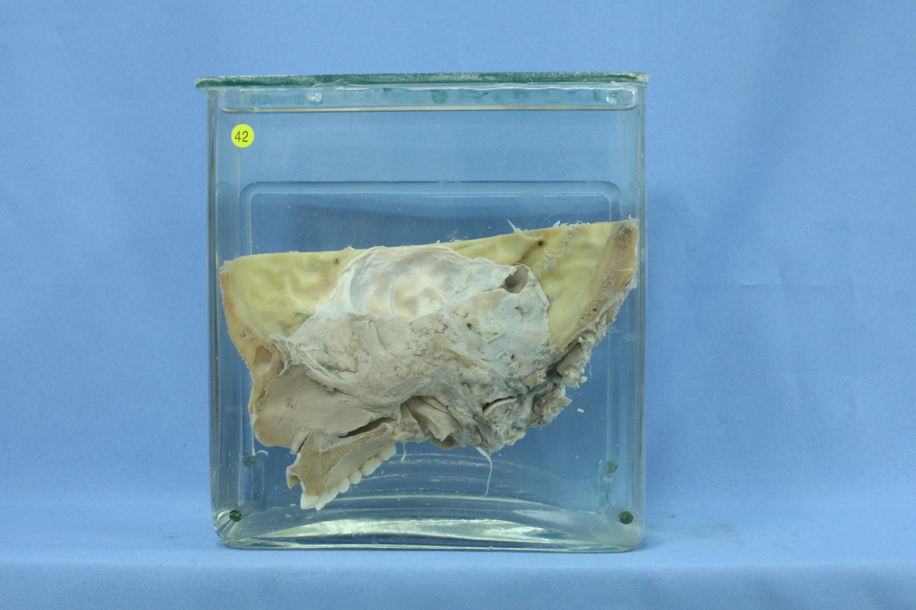 患者男性,28岁,颅骨正中矢状断面,鼻咽、后咽壁、蝶窦、额窦等见多处灰白色隆起。