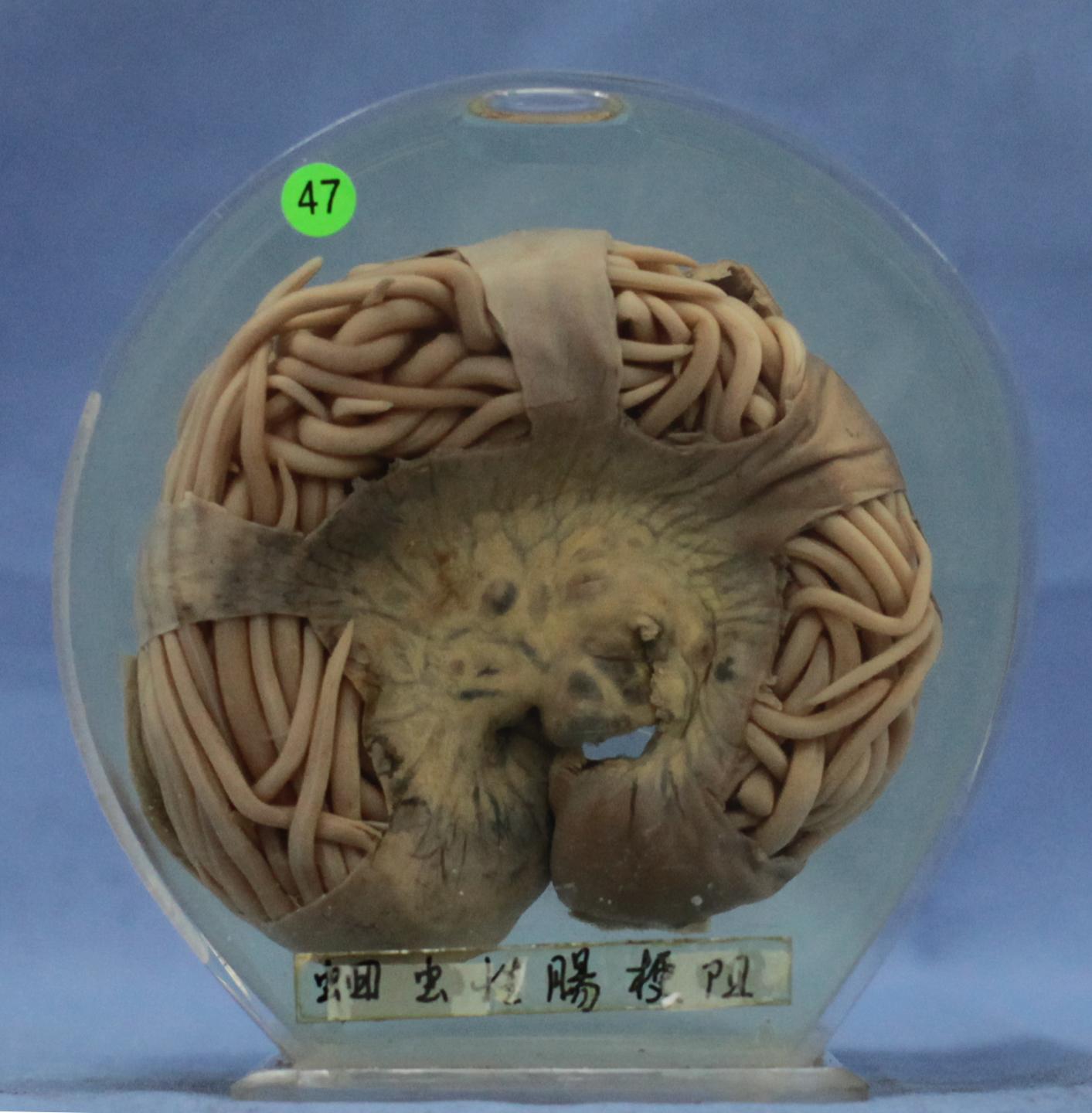 患者女性,67岁。大量蛔虫在肠内相互缠结成团而致肠腔机械性阻塞。