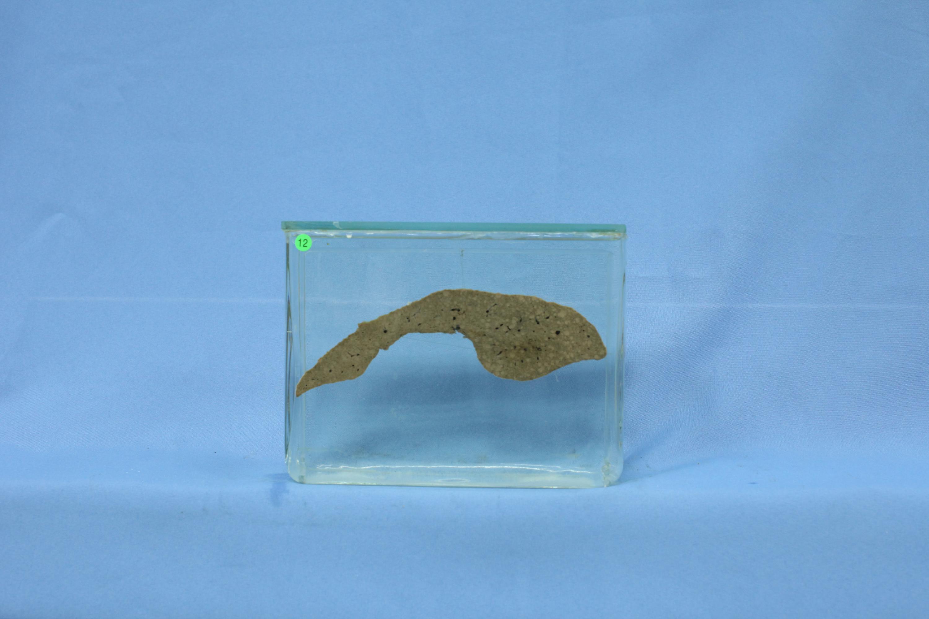 男,42岁。主诉“乏力、胃纳减退2周,皮肤黄疸1周”。肝脏体积明显缩小,表面高低不平呈结节状,切面灰黄色结节。(纤维间隔不明显,故为肝硬化早期)