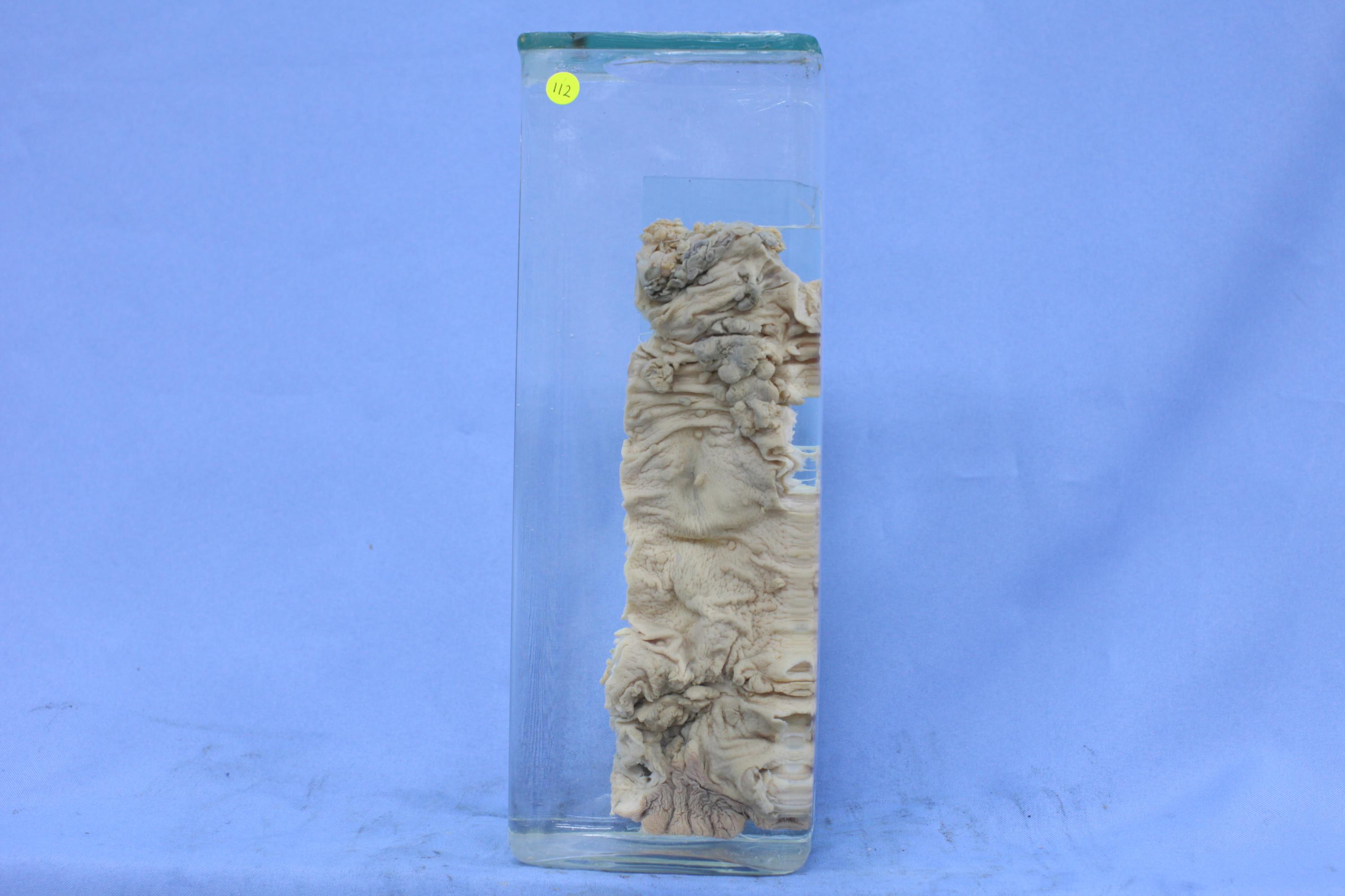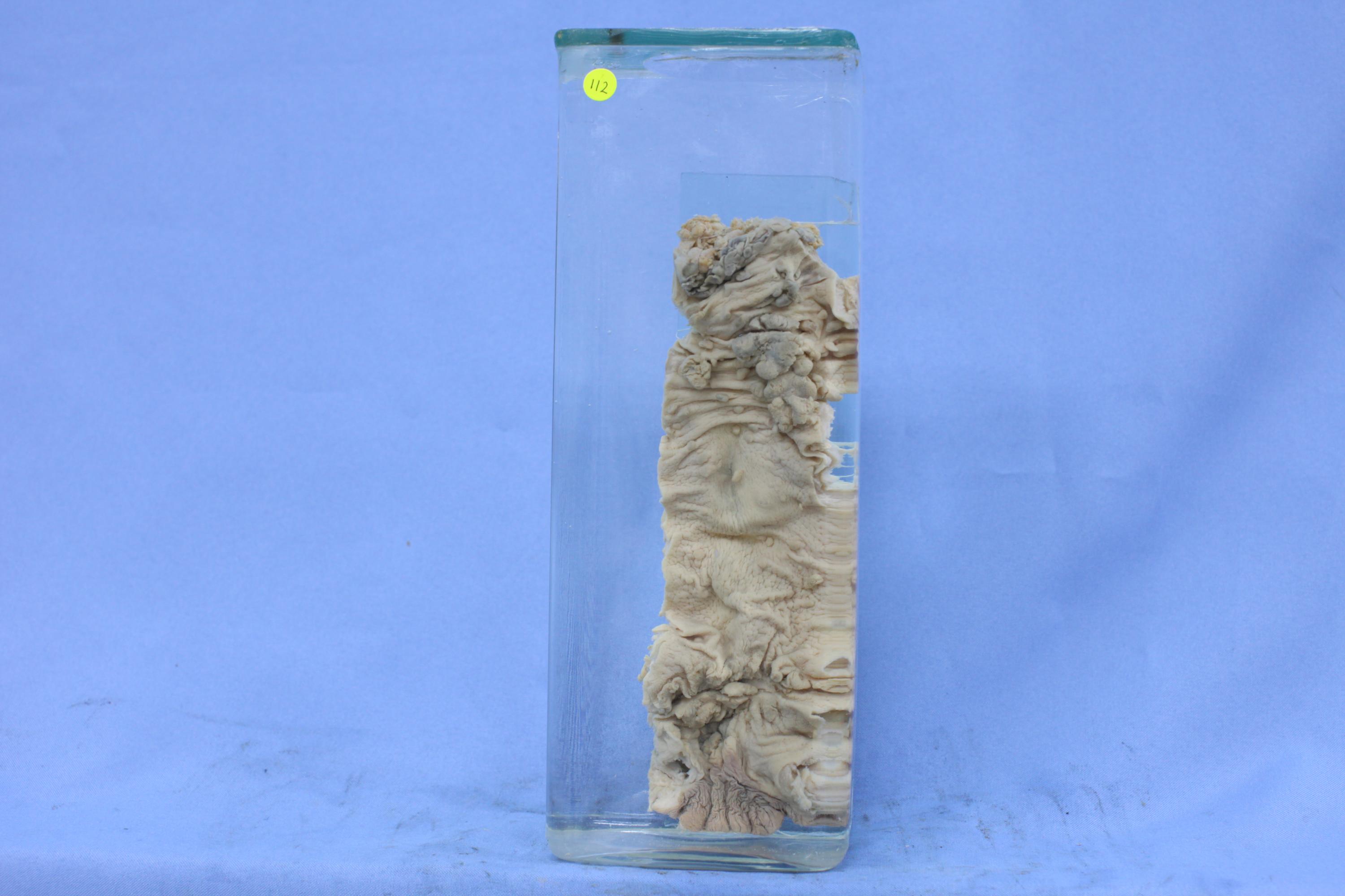 长约15厘米直肠带肛标本。肠黏膜面见多个大小不等的肿瘤,呈息肉状突向肠腔内生长,直径在0.3-2厘米,有蒂,个别大者表面呈细绒毛状,可见出血坏死灶。