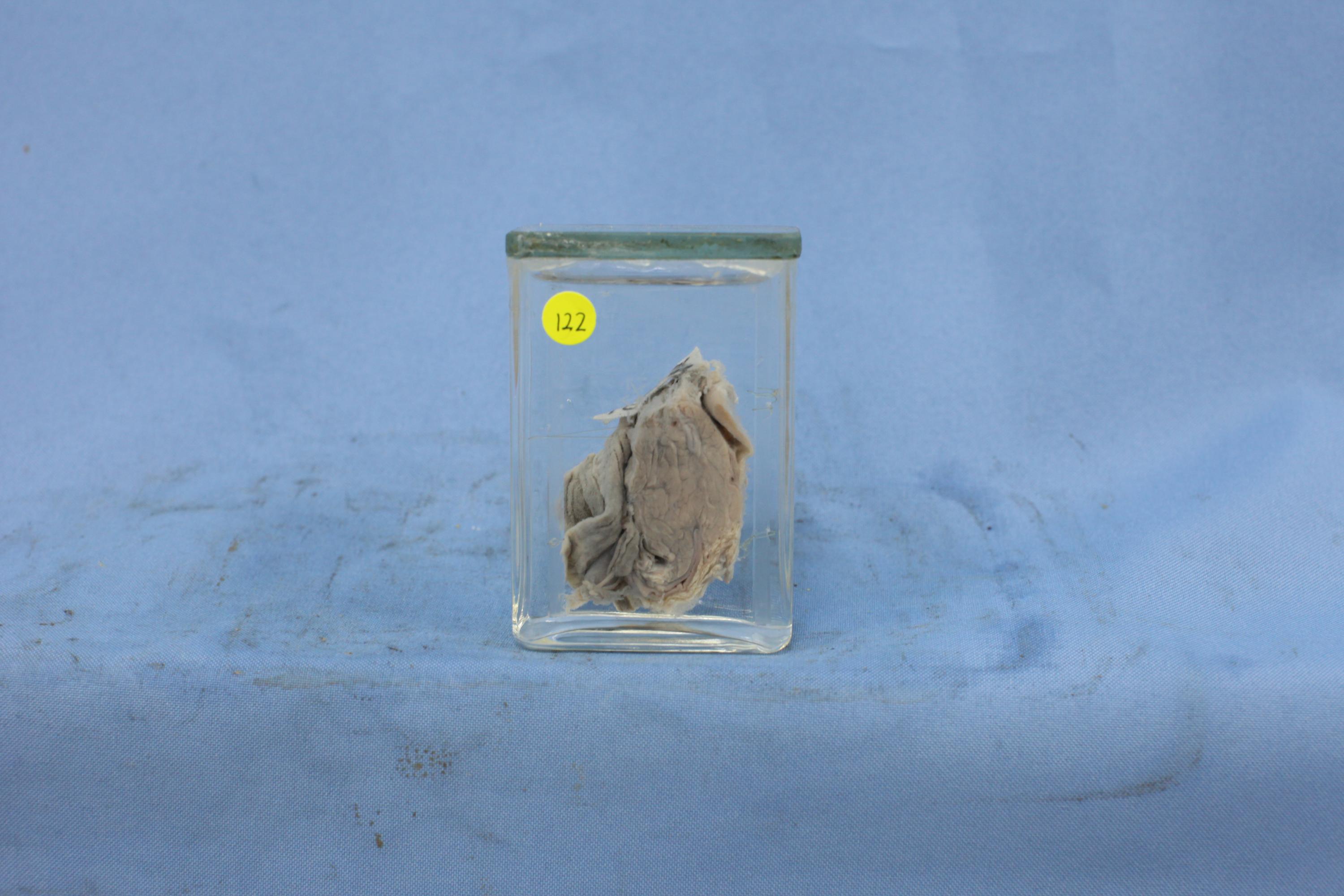 胰腺组织4×3×2厘米,已剖开,组织呈黑白相间,结构模糊,表面见散在灰白色斑点 或小点状脂肪坏死灶。