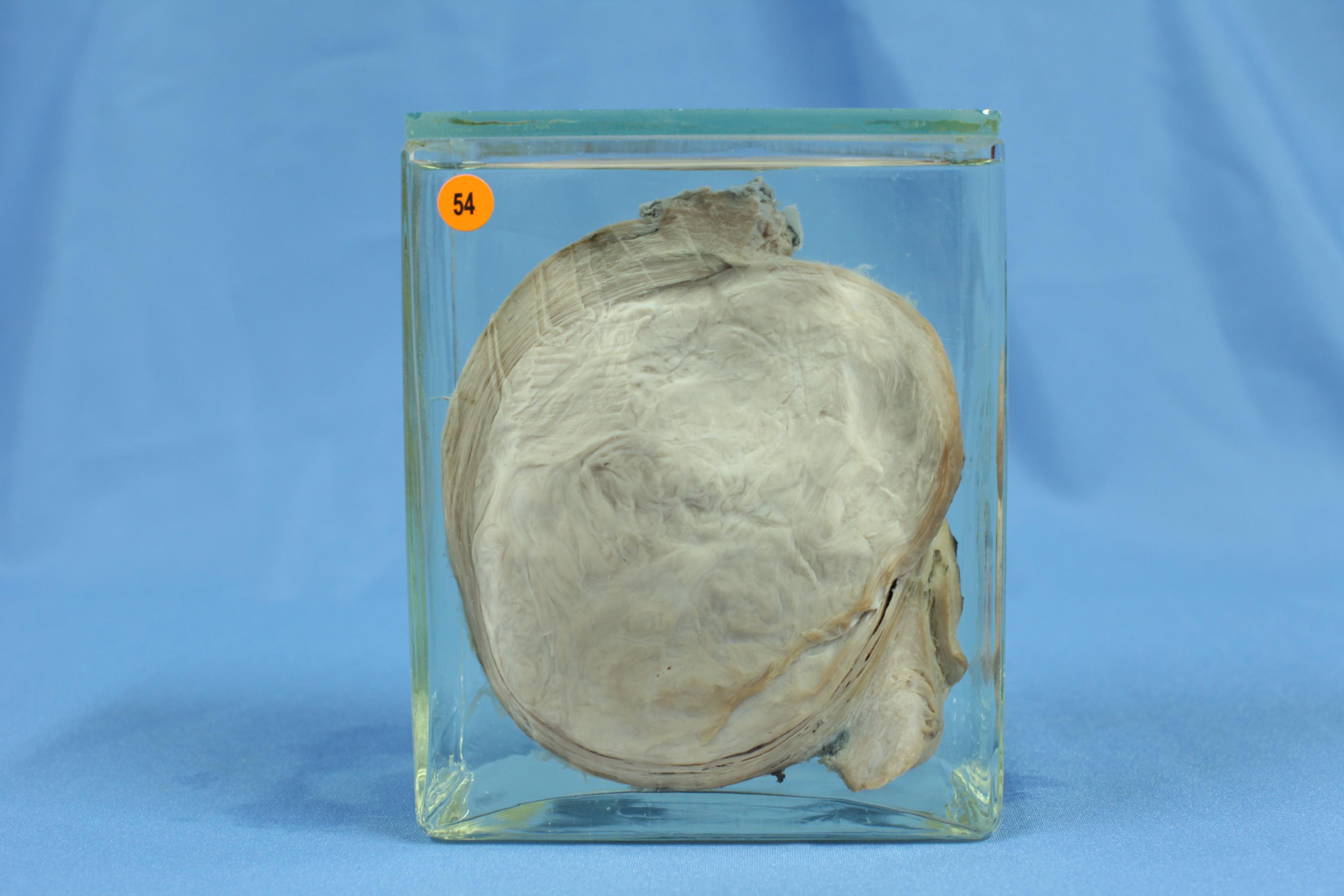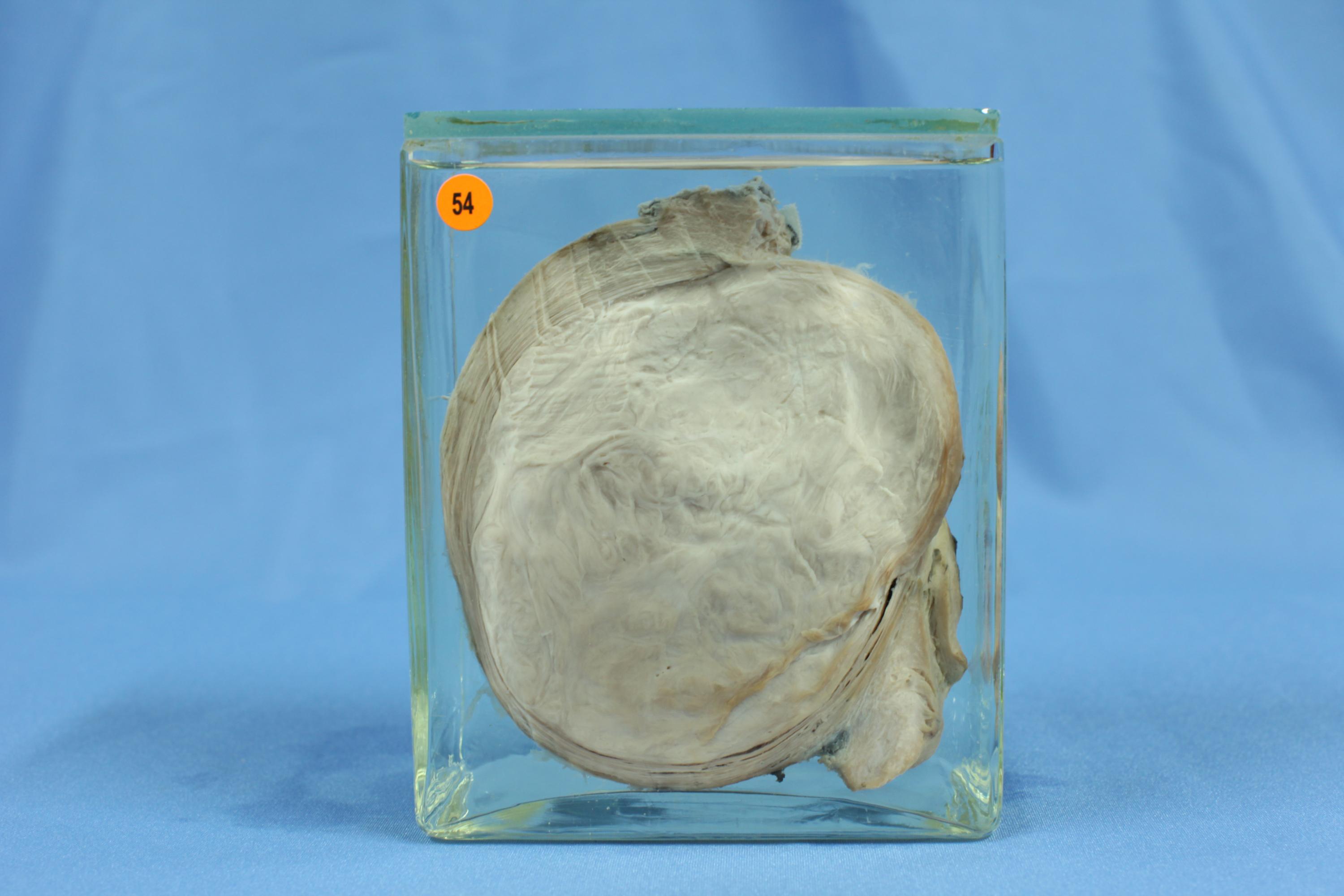 切开肿瘤,直径10cm,质坚硬,与子宫肌层的质地不同。肌瘤与周围的肌组织有明显的界限,没有包膜,周围肌组织受压后形成假包膜。肿瘤切面呈灰白色漩涡状或编织状结构,夹有纤维条索。