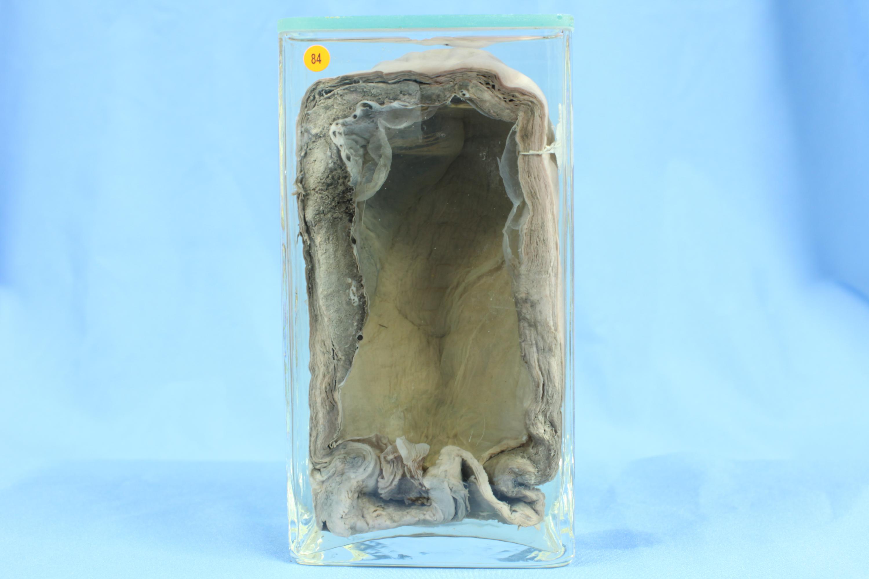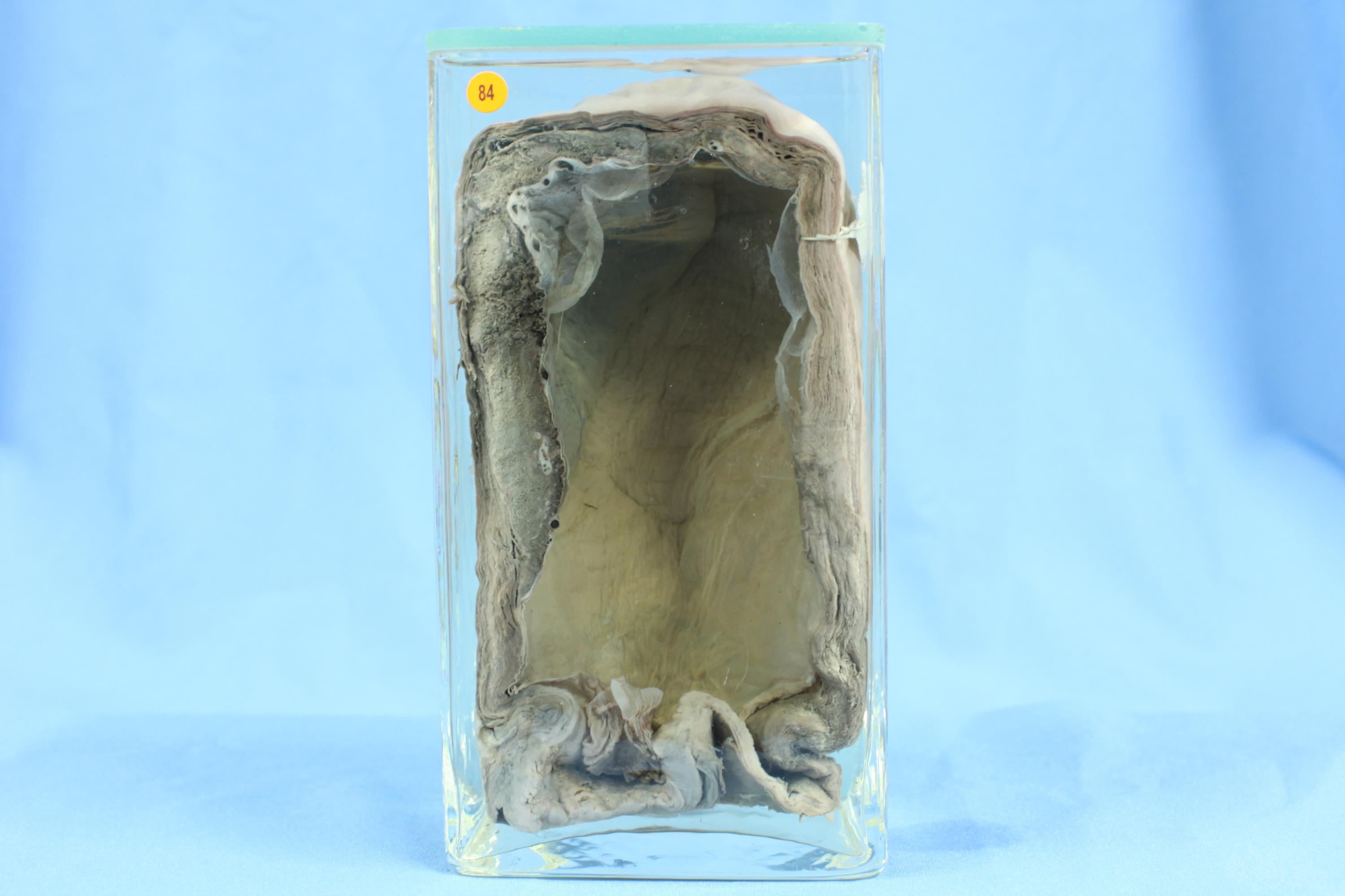 切开子宫大小20X8X7cm,子宫壁厚1.5cm。