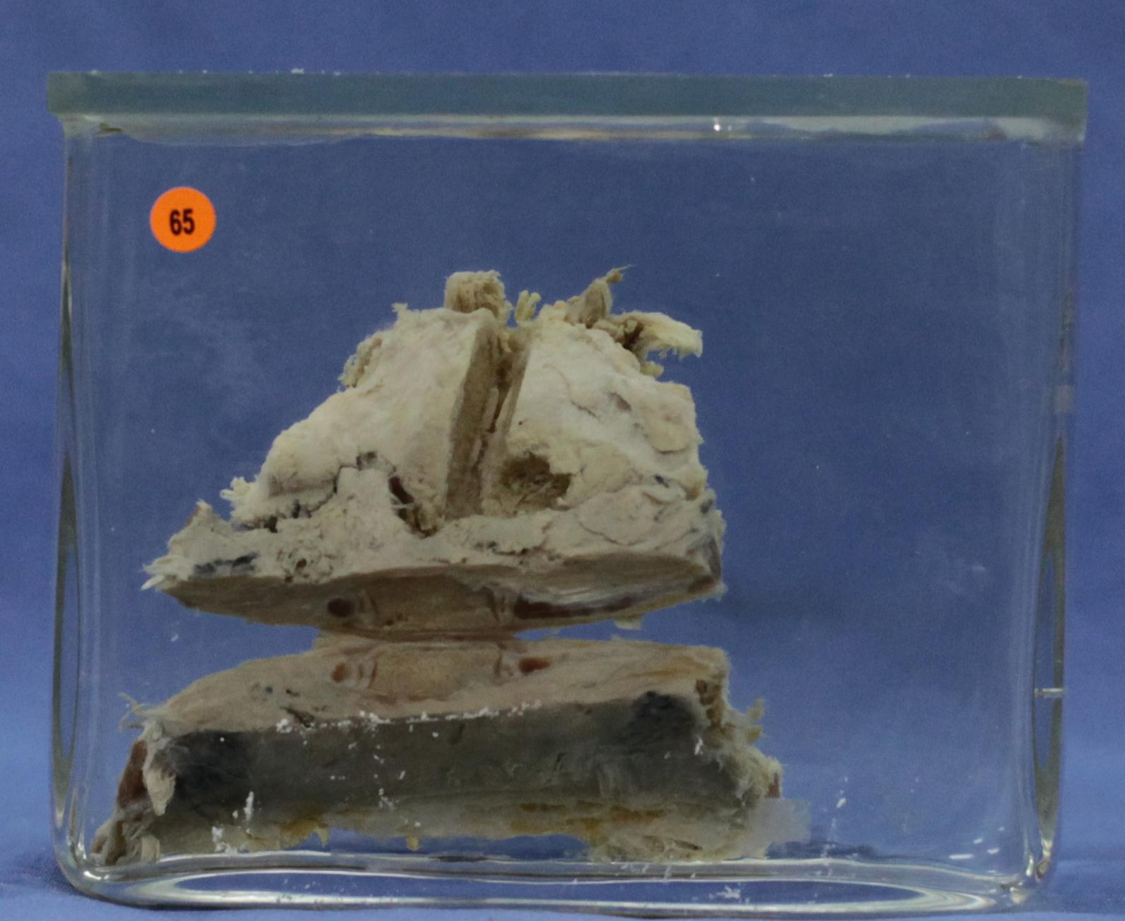 胸前壁取材,软组织内见大片灰白色肿瘤组织,累及并破坏胸骨。