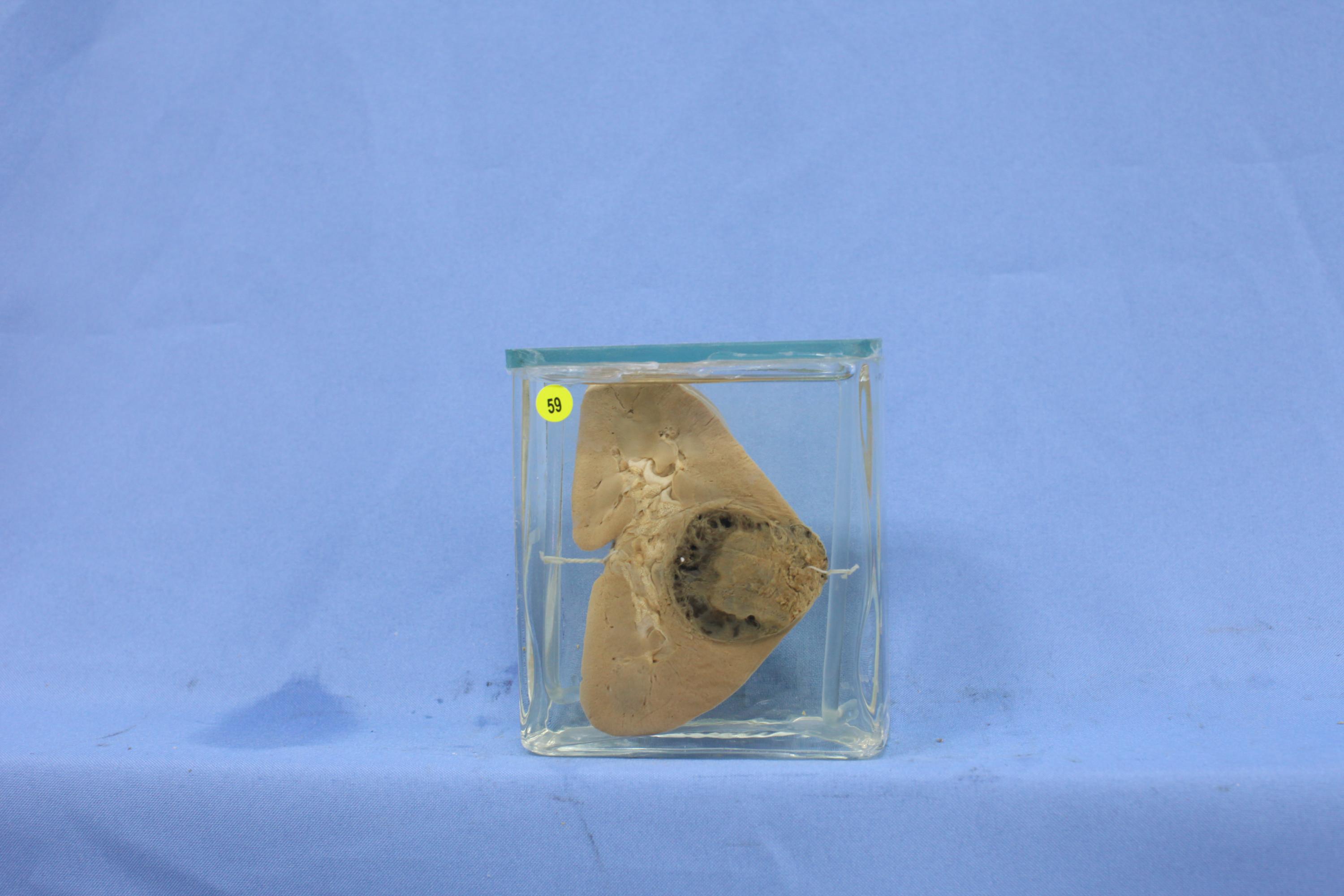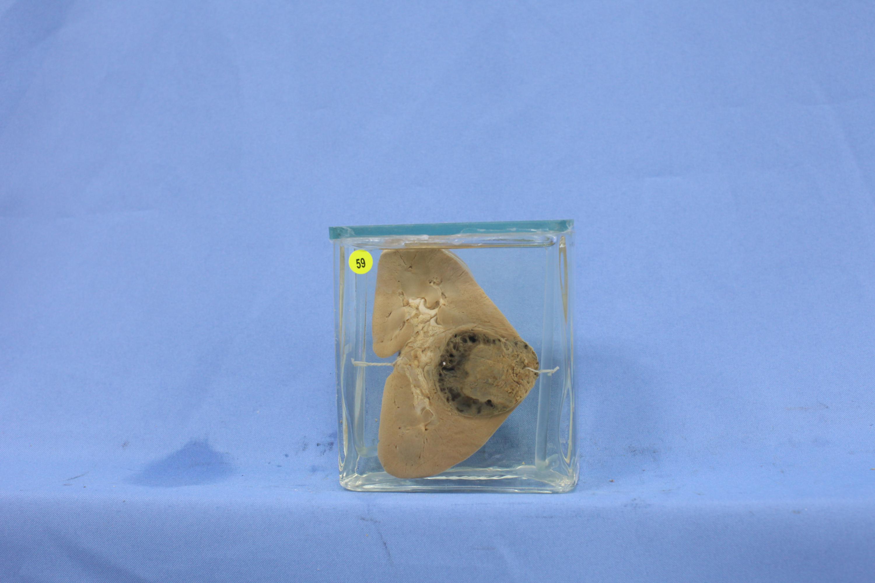 肾脏切面见包膜下一巨大圆形占位性病变,灰白、质中,肿瘤出血明显,与周围正常组织分界较清,肿瘤组织已突破肾脏包膜,周围肾脏组织结构清晰。