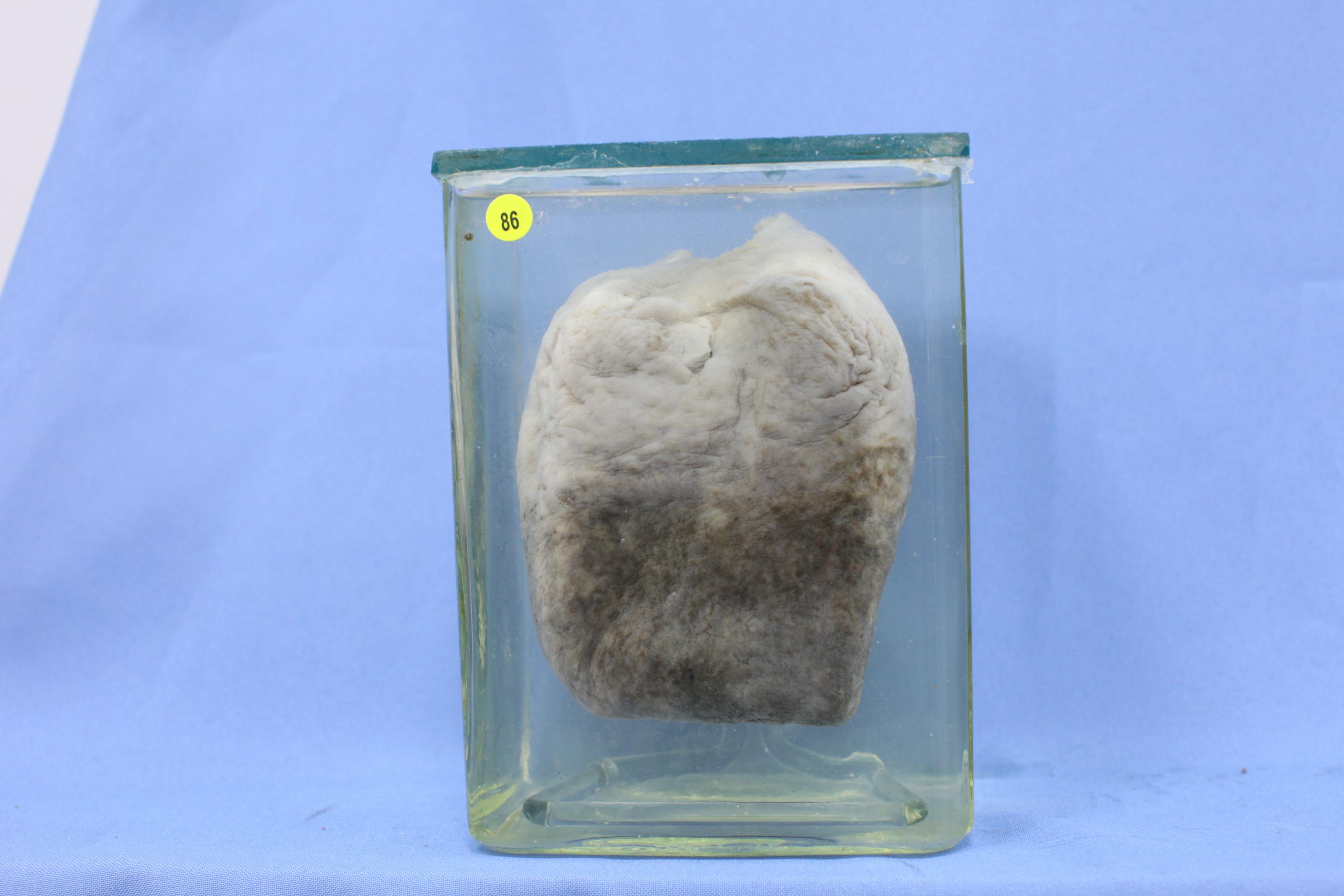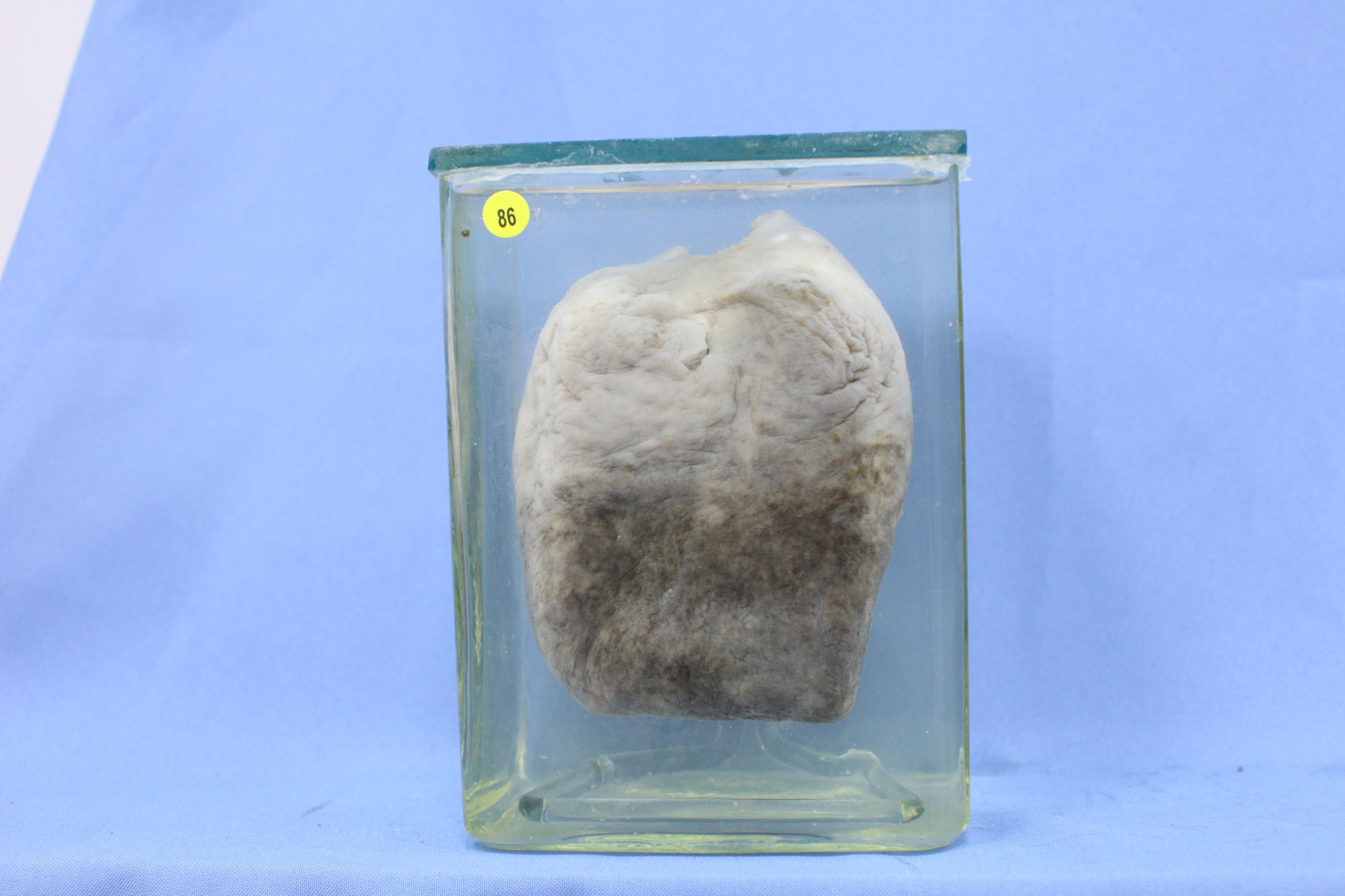 膀胱体积增大。标本将粘膜面外翻,见膀胱粘膜粗糙,局部暗红色,明显充血淤血。病变部分与周围组织分界较清晰,周围膀胱黏膜也轻度淤血。