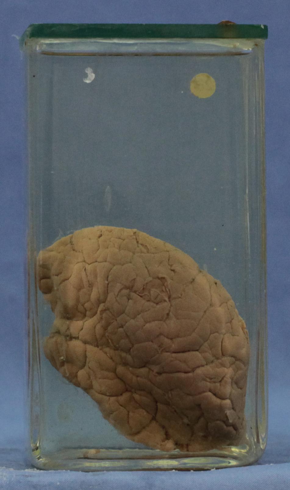 新生儿大脑左半球,大脑侧裂附近见多、小脑回,纵切面脑室扩大、脑积水。