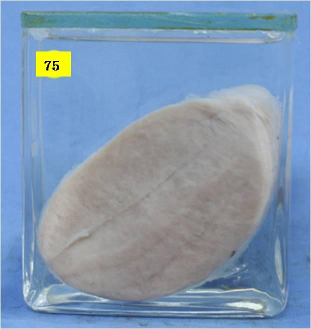 灰红色肿块一枚,5*15cm,卵圆形,其中可见纤维束条。