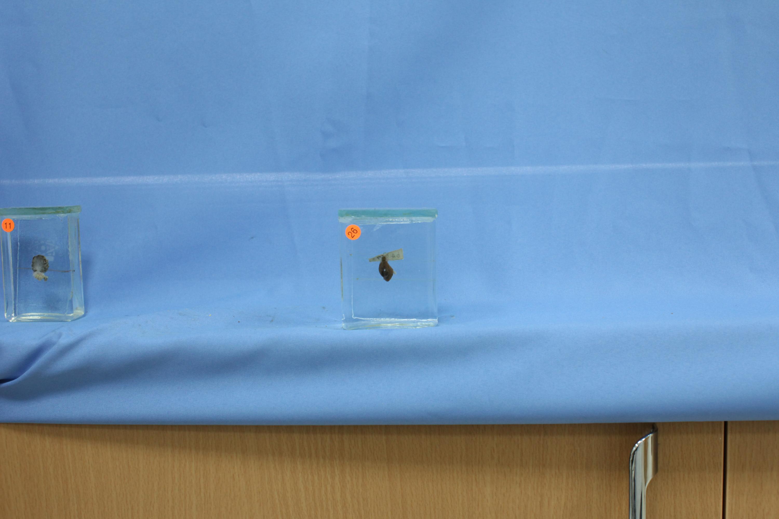 梭形皮肤表面见一黑色隆起性病变,直径约0.8厘米;镜下以基底细胞乳头状增生为特点的良性病变。