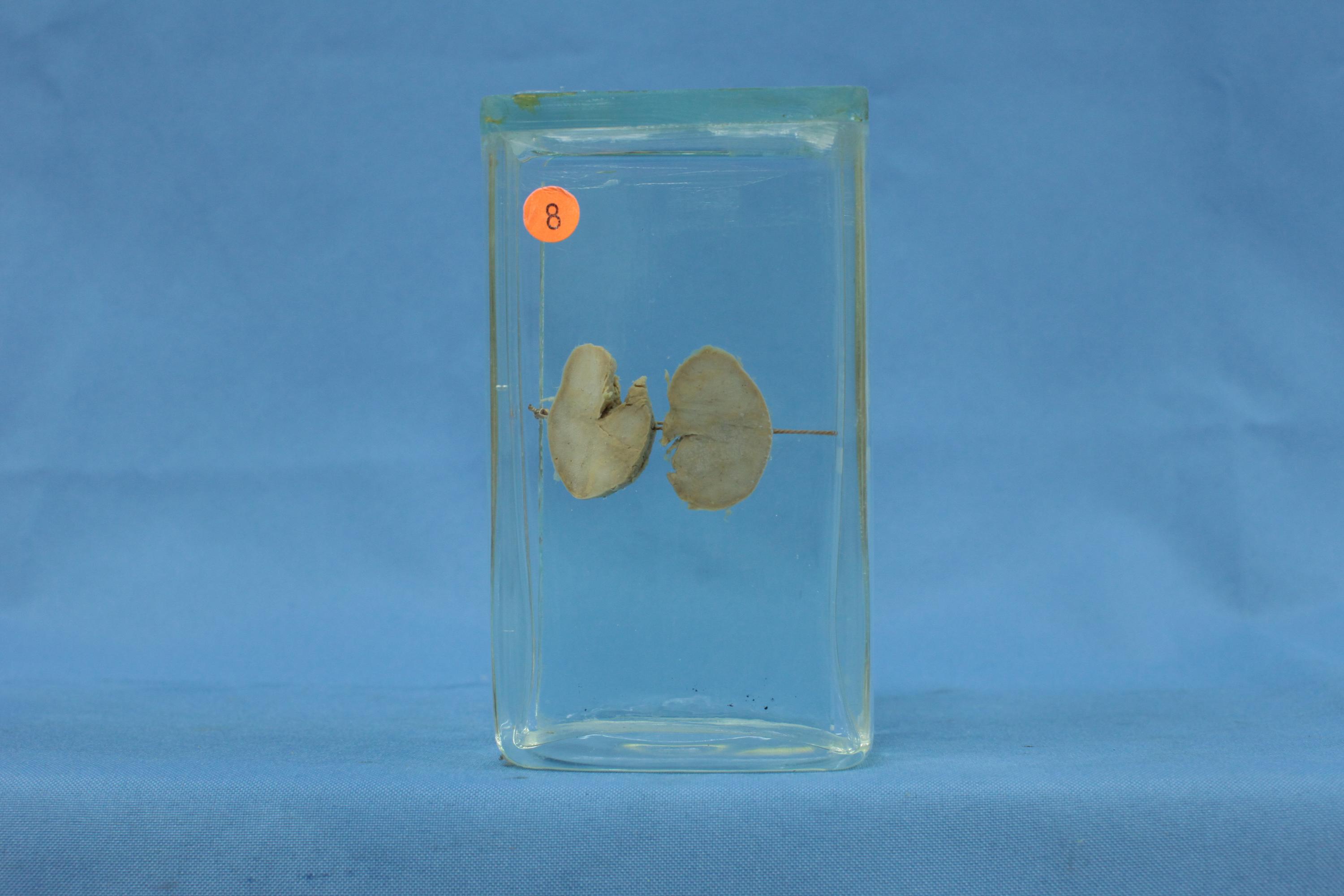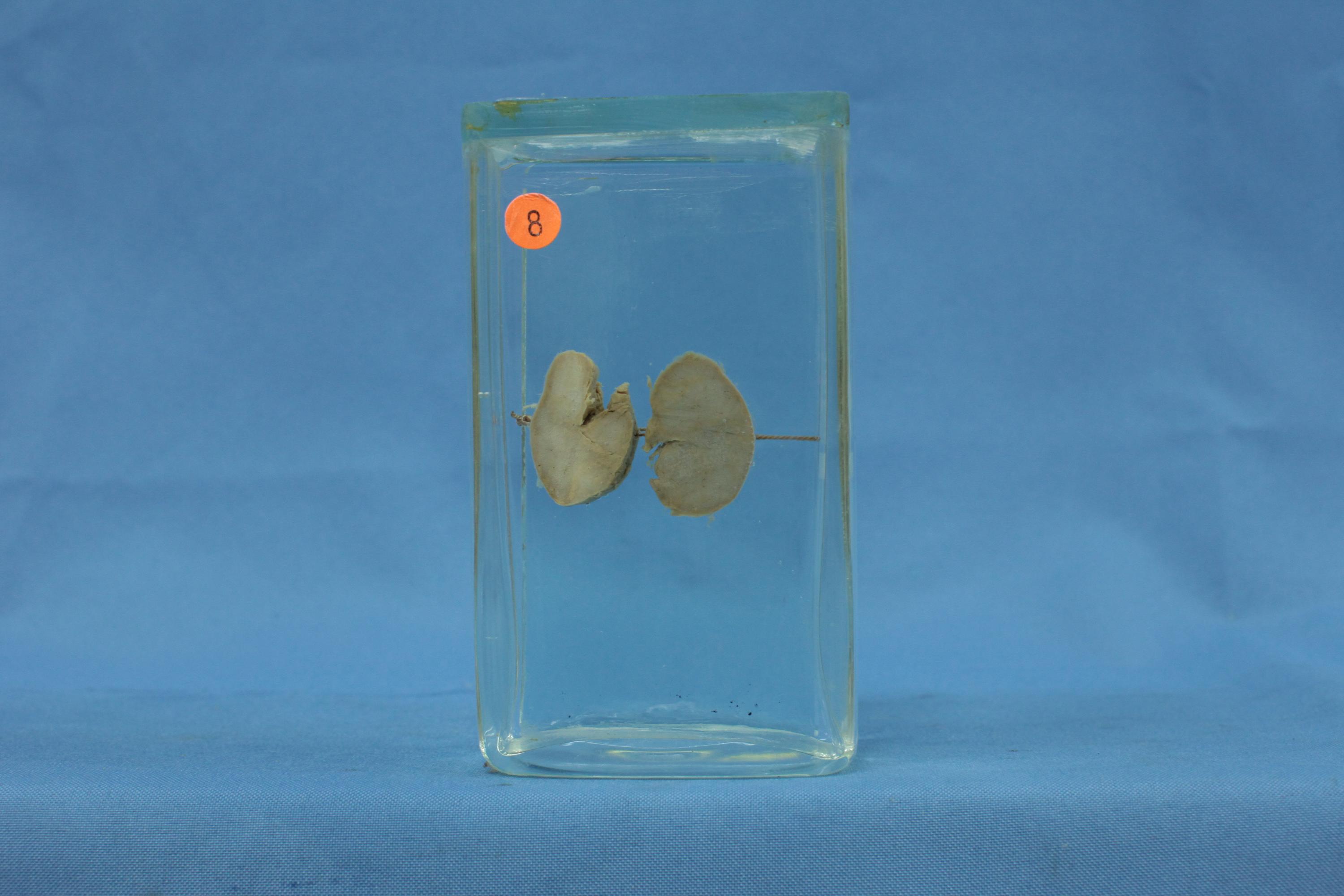 标本为腺瘤组织,结节包膜完整,切面灰白色,局部组织有淡黄色坏死。