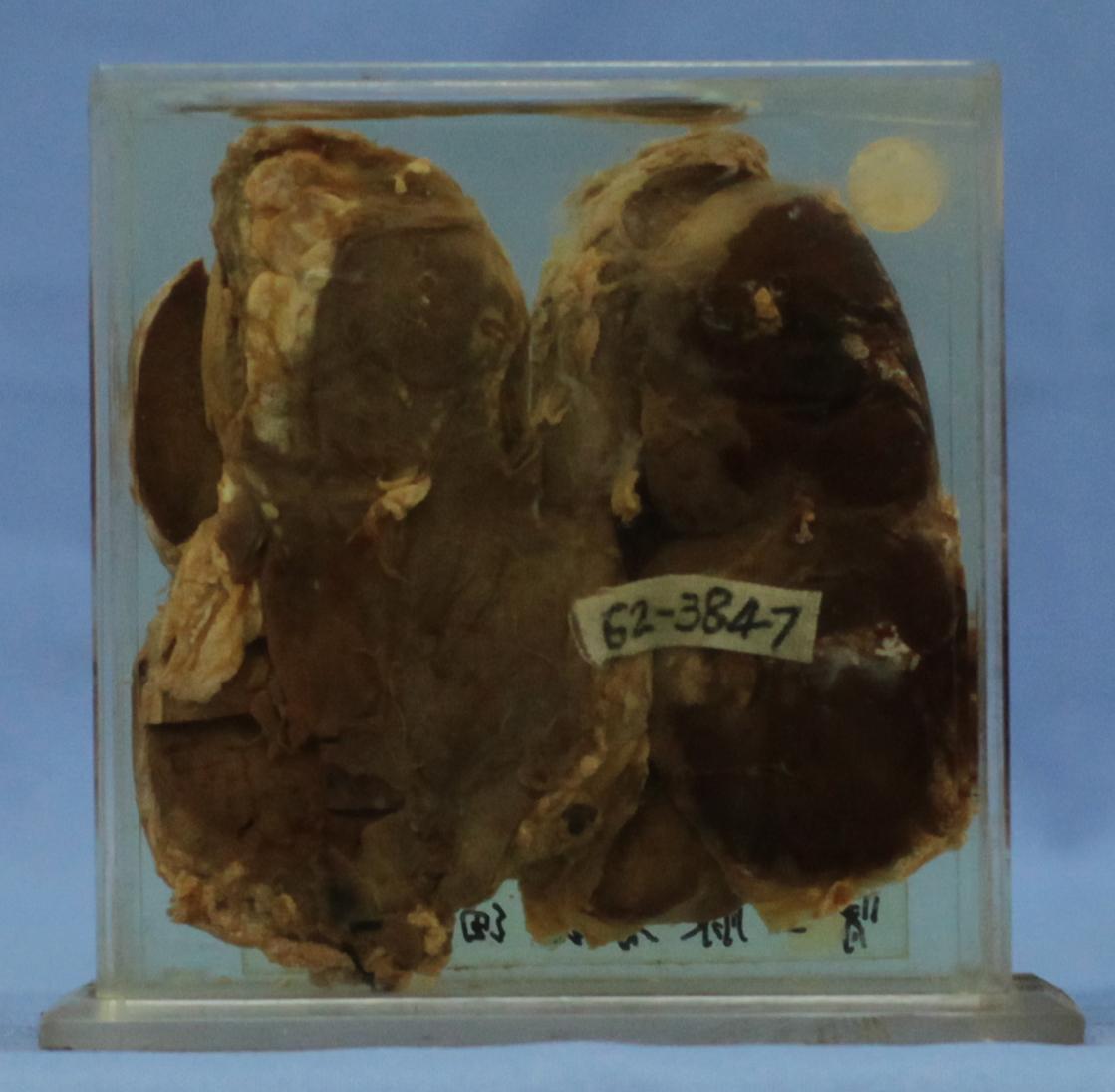 标本为肾上腺组织,结节包膜完整,切面灰褐色,质实。