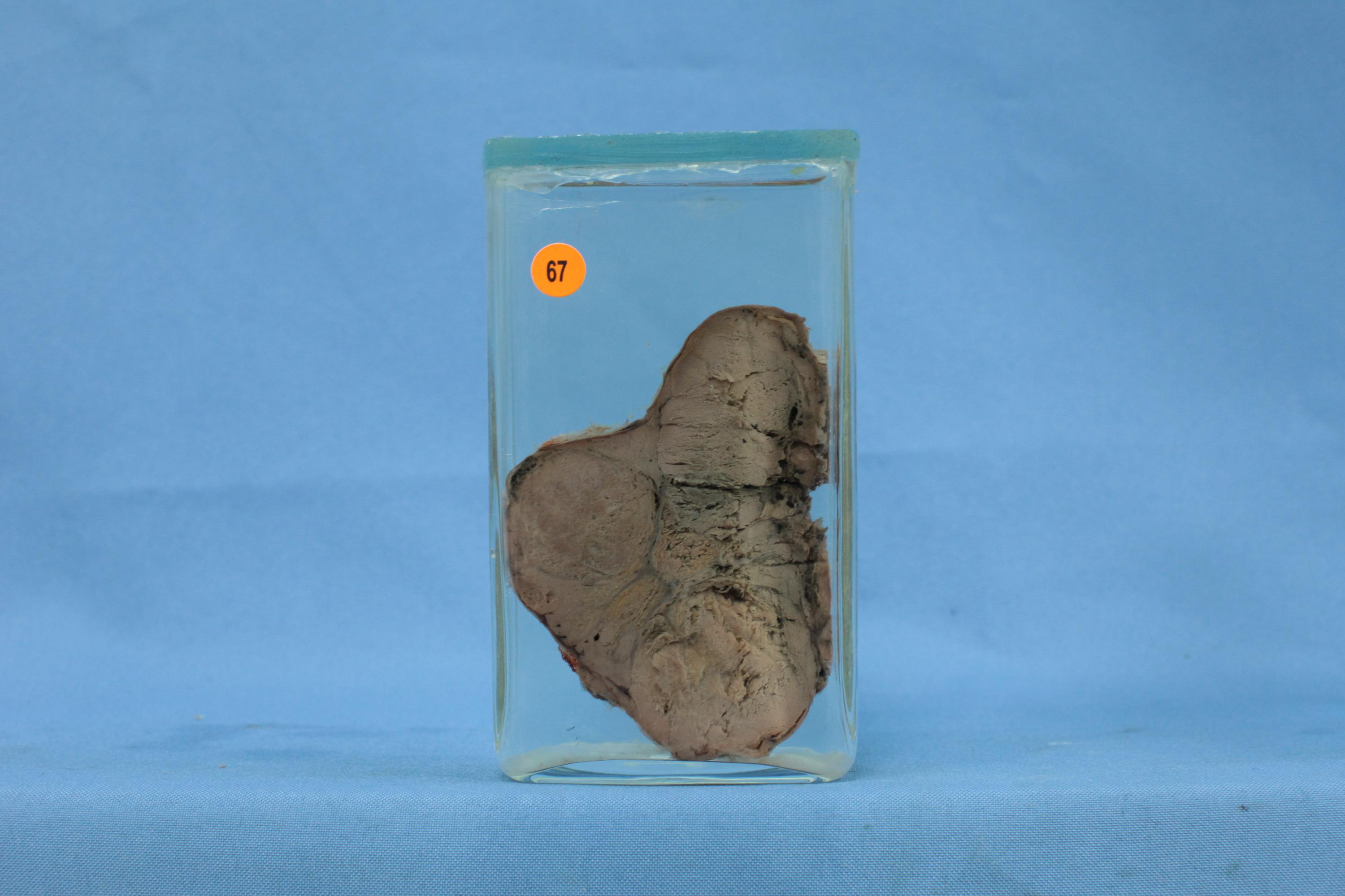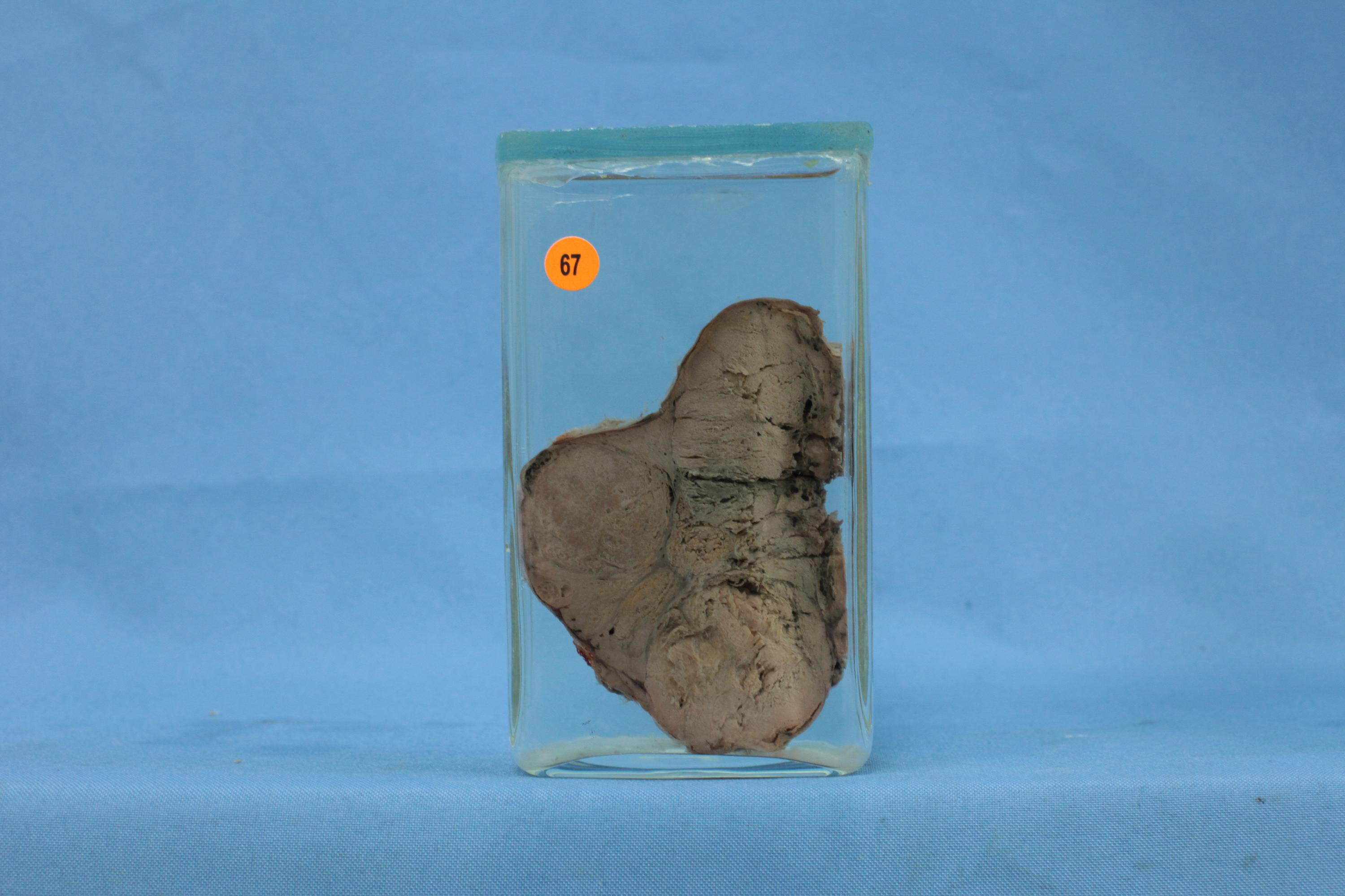 标本为肾上腺组织,切面见多个灰白色结节,质实,表面呈分叶状。
