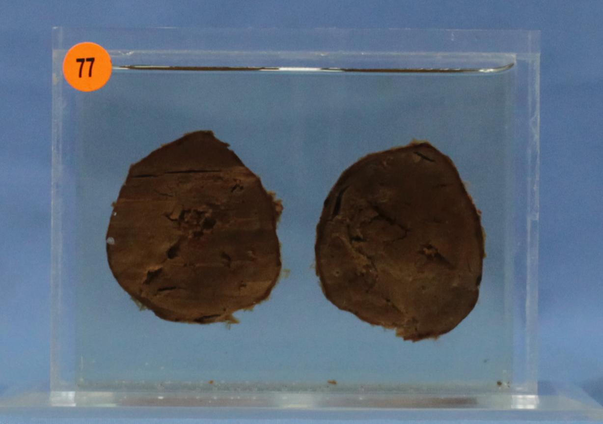 标本为肾上腺组织,切面见一灰红、质实结节,有完整包膜。
