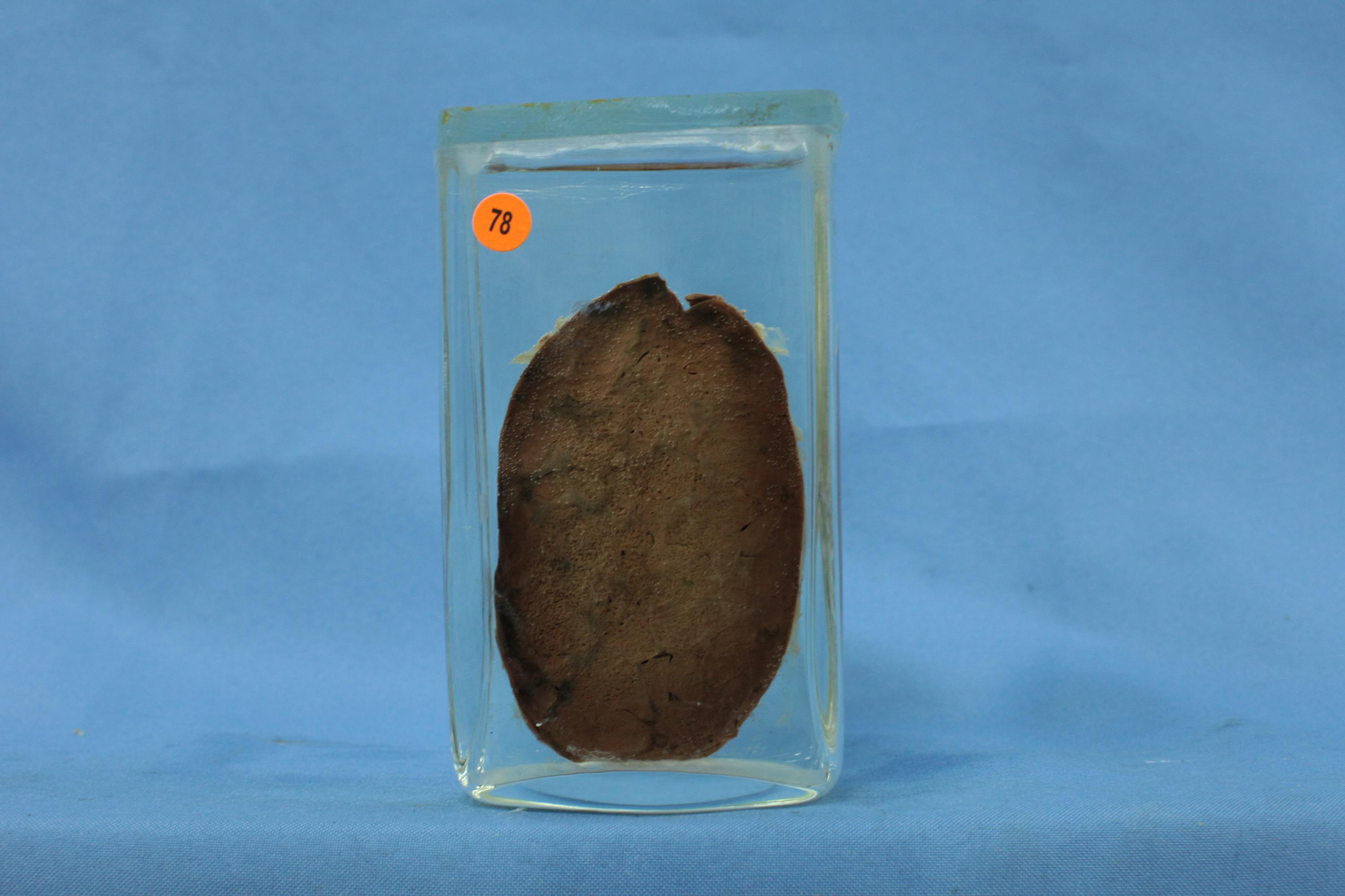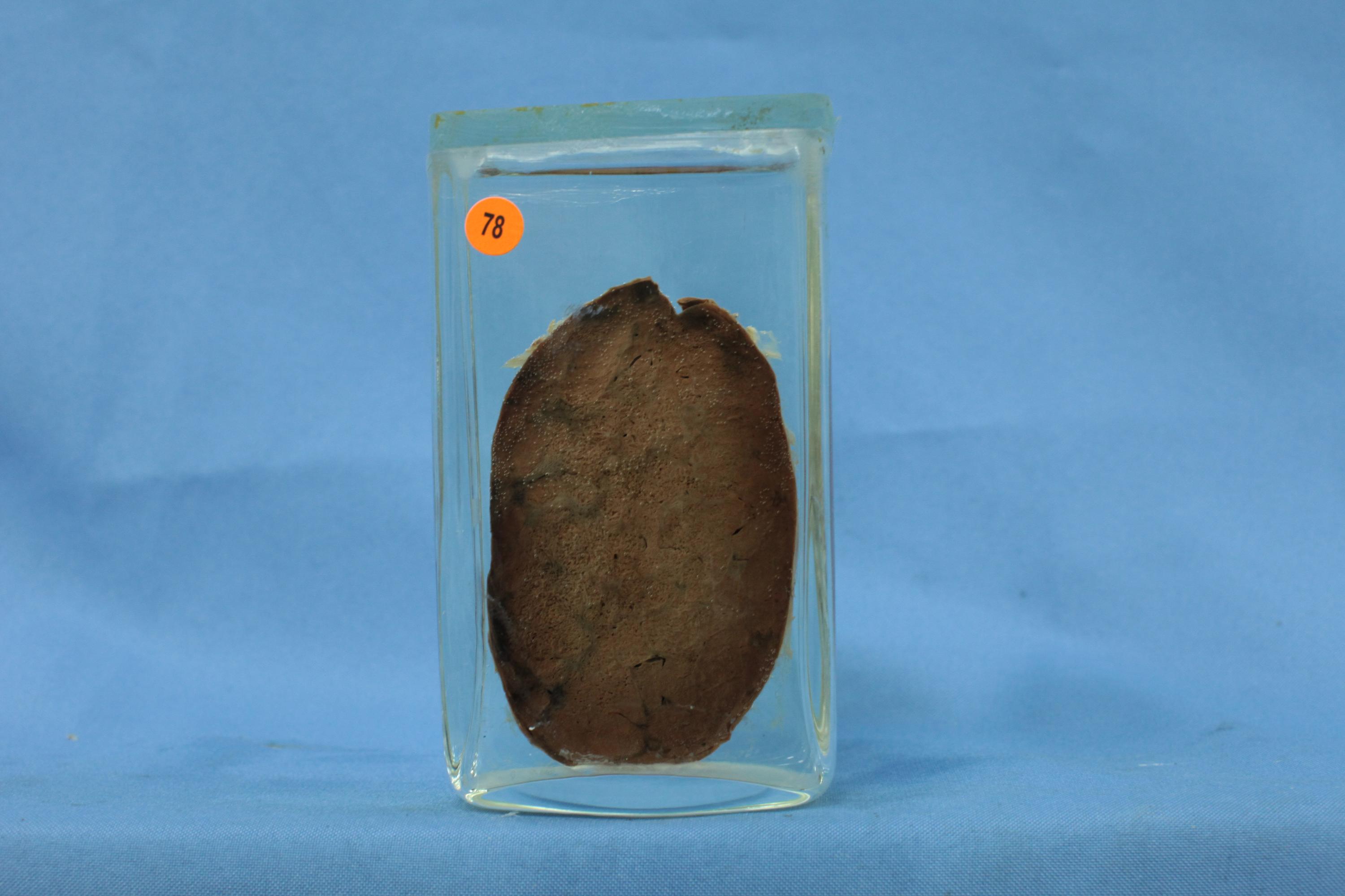 患者女,9岁,肾上腺组织,切面见一灰红、质实结节,有完整包膜。