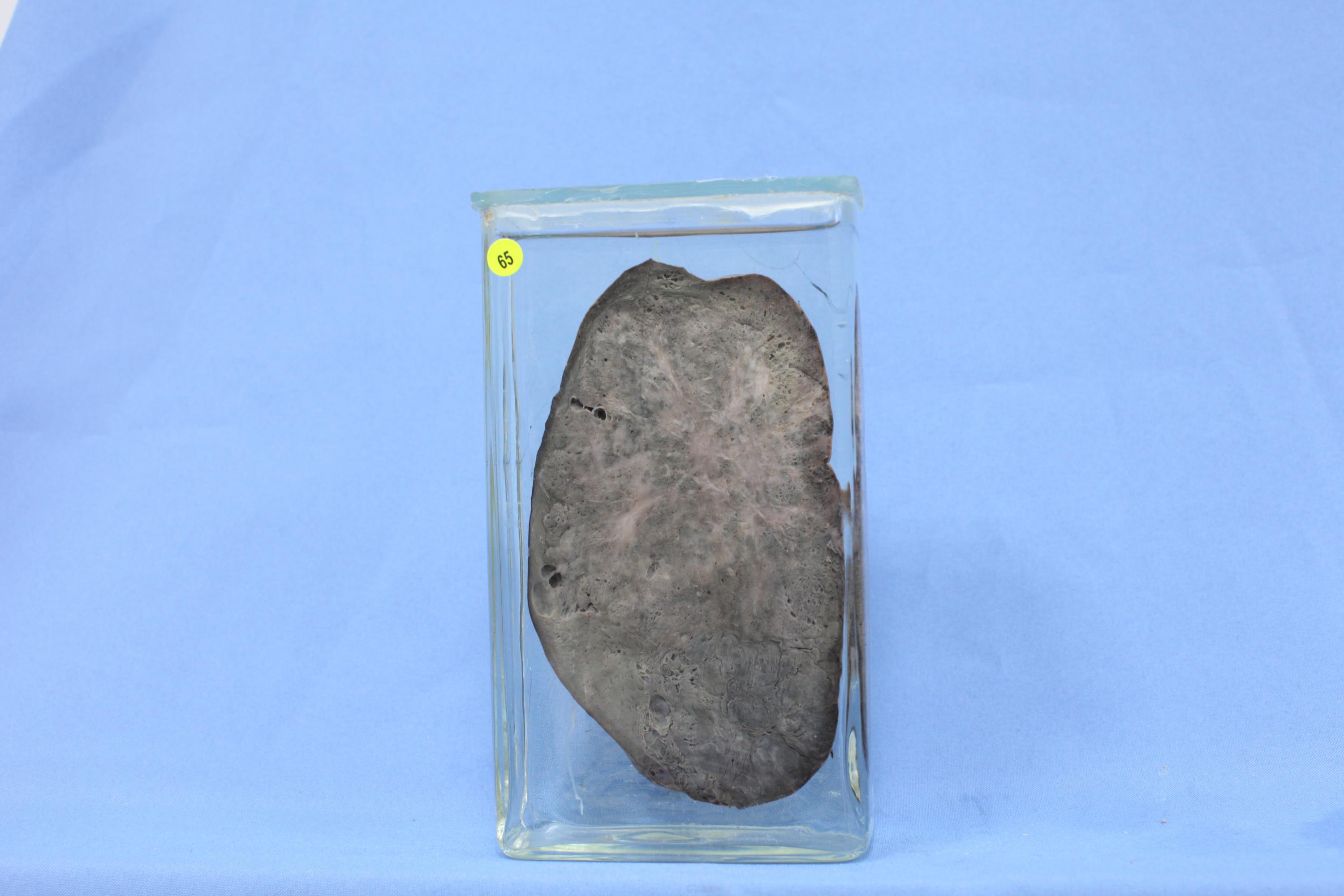 脾脏正常的组织结构消失,代之以灰红色巨大肿块,大小约23×14×15厘米,;切面分叶状。镜下肿瘤由畸形的淋巴管和血管构成,良性。