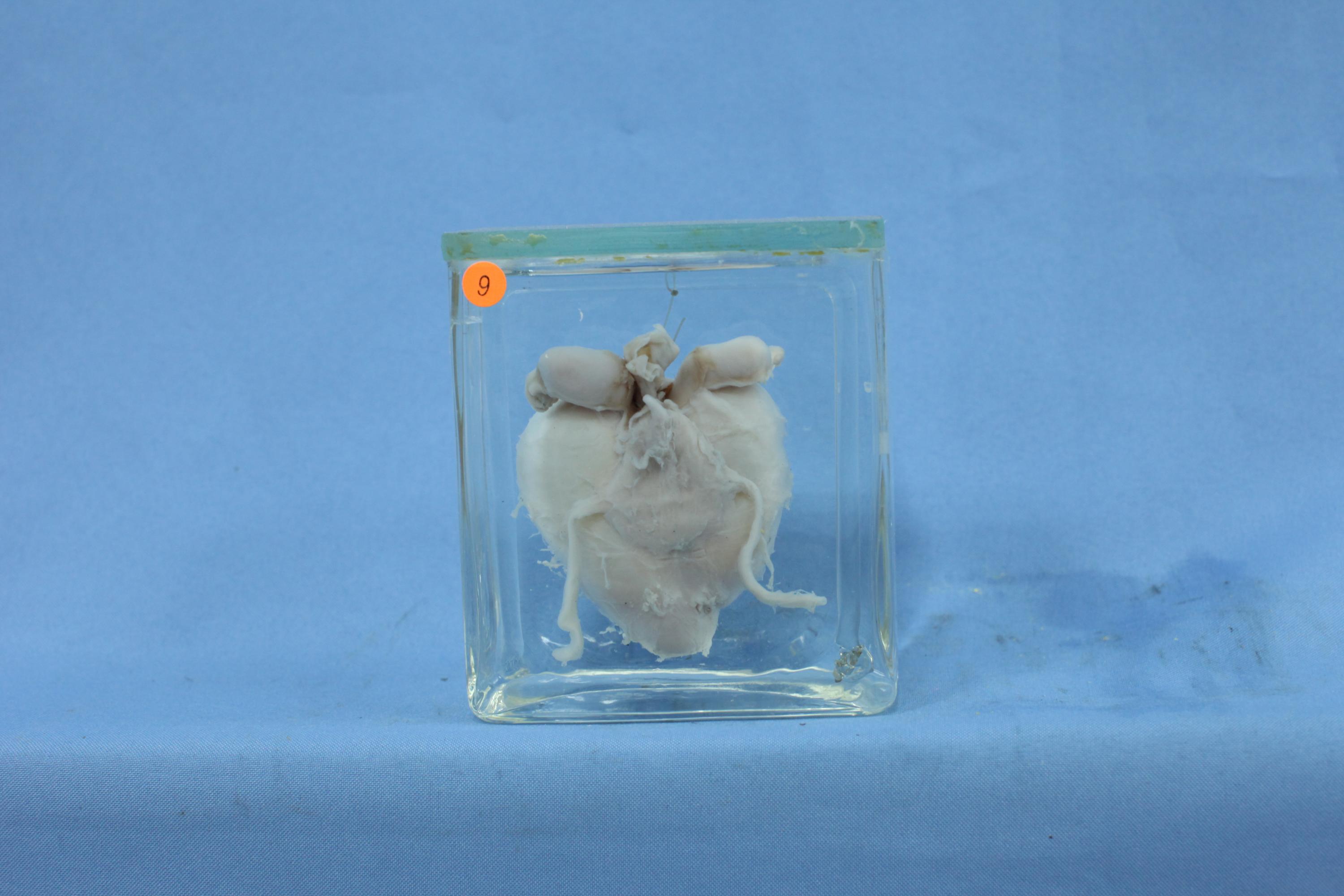 膀胱上端呈双角状;两侧输尿管下端融合,共同开口于膀胱。